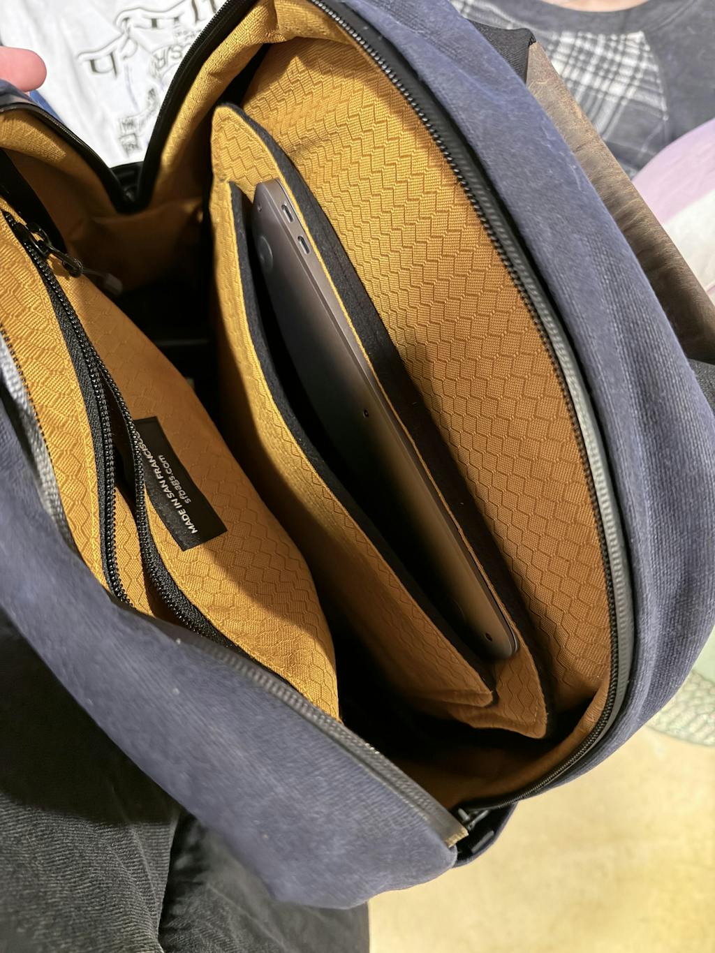 Very nice backpack and love it’s made in SF. I bought it for my son going to college and he loves it. It’s perfect.